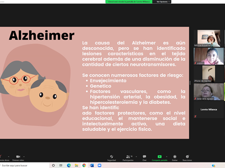 El jueves 02 de septiembre a partir de las 15:30 horas y a través de la plataforma Zoom, se dará inicio a un taller de prevención de Alzheimer, el cual tiene por objetivo principal mantener las funciones cognitivas y ejecutivas con un enfoque preventivo del deterioro cognitivo, mediante la entrega de información y actividades prácticas como herramientas para su uso en la cotidianeidad de las personas.