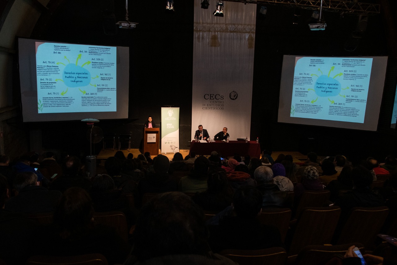 Con aforo completo, fueron 120 las personas que repletaron el auditorio del Centro de Estudios Científicos durante este sábado, con el motivo de escuchar a los constituyentes y académicos que participaron de la primera jornada de difusión organizada por la Municipalidad, en la que desglosaron parte de la propuesta constitucional hecha por la convención, la que será plebiscitada el próximo 4 de septiembre.