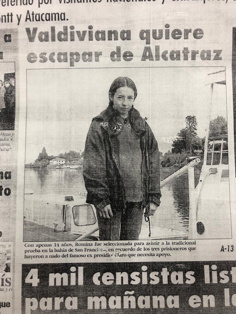 En cuanto a las experiencias más extremas que vivió Romina durante su trayectoria como nadadora, señala “La Escapada de Alcatraz”, competencia que contempla un cruce desde la famosa isla hasta la Bahía de San Francisco sin botes de apoyo, donde la valdiviana se ubicó dentro de los primeros 100 nadadores de un total de 700 y trajo una medalla de plata en la categoría infantil de 15 a 17 años.