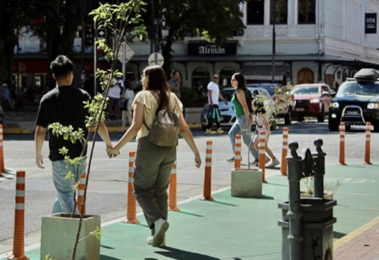 “No es al azar cada esquina que se eligió y que se pintó. Este es un proyecto que tiene una estrategia de crecimiento en el tiempo. Lo primero fue recuperar el espacio, que es difícil el cambio cultural. Después viene decretar el centro como una zona 30, lo que permite después tener una inversión definitiva. Lo que hoy en día es pintura verde quieren ser ampliaciones de veredas oficialmente y tener más espacio peatonal”.