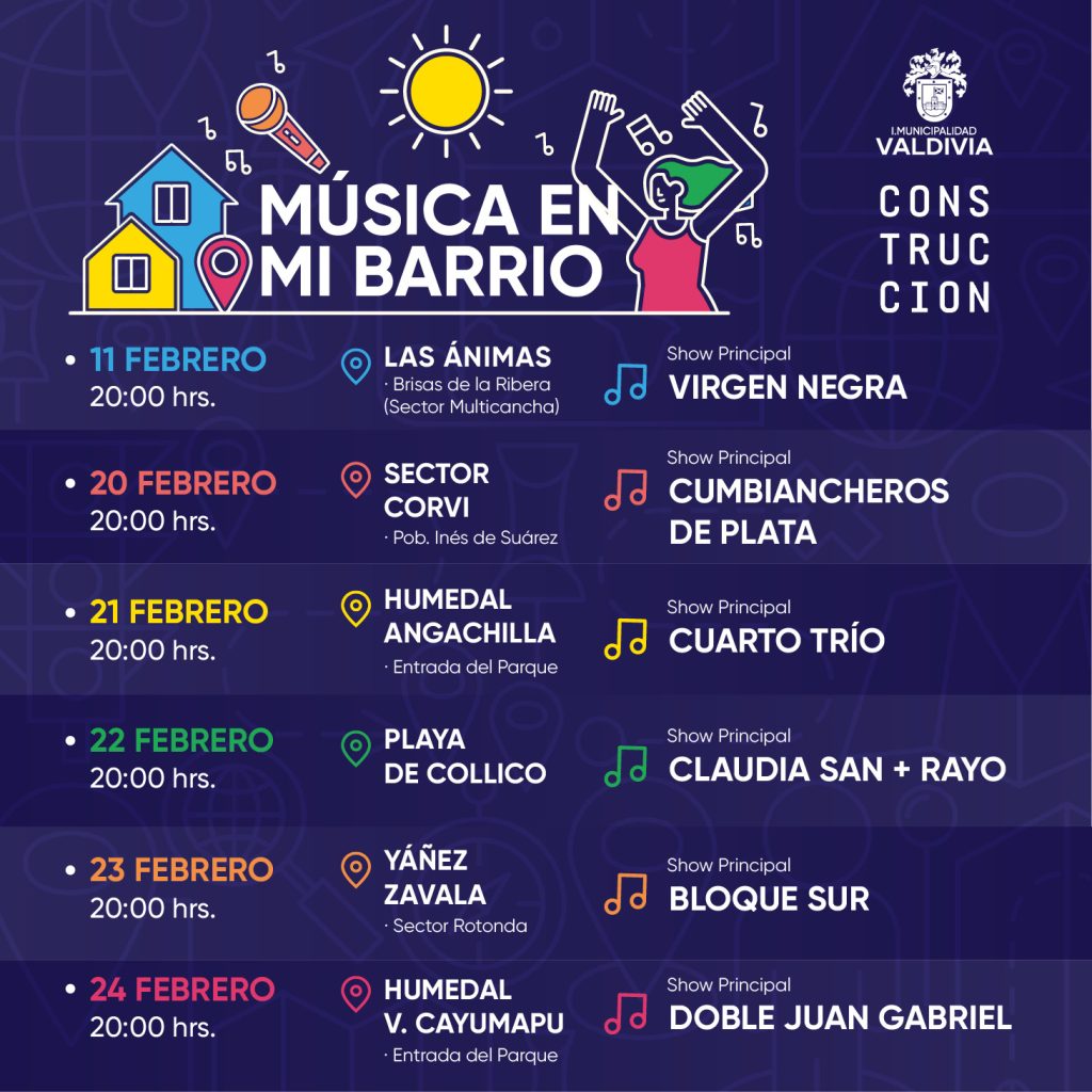 La iniciativa impulsada por la Municipalidad de Valdivia en conjunto con el Centro Cultural Espacio En Construcción busca acercar la programación cultural a los barrios “Música en Mi Barrio”, es el nombre de la actividad que se iniciará este sábado y que es parte del programa de verano “Valdivia Para Todos” […]