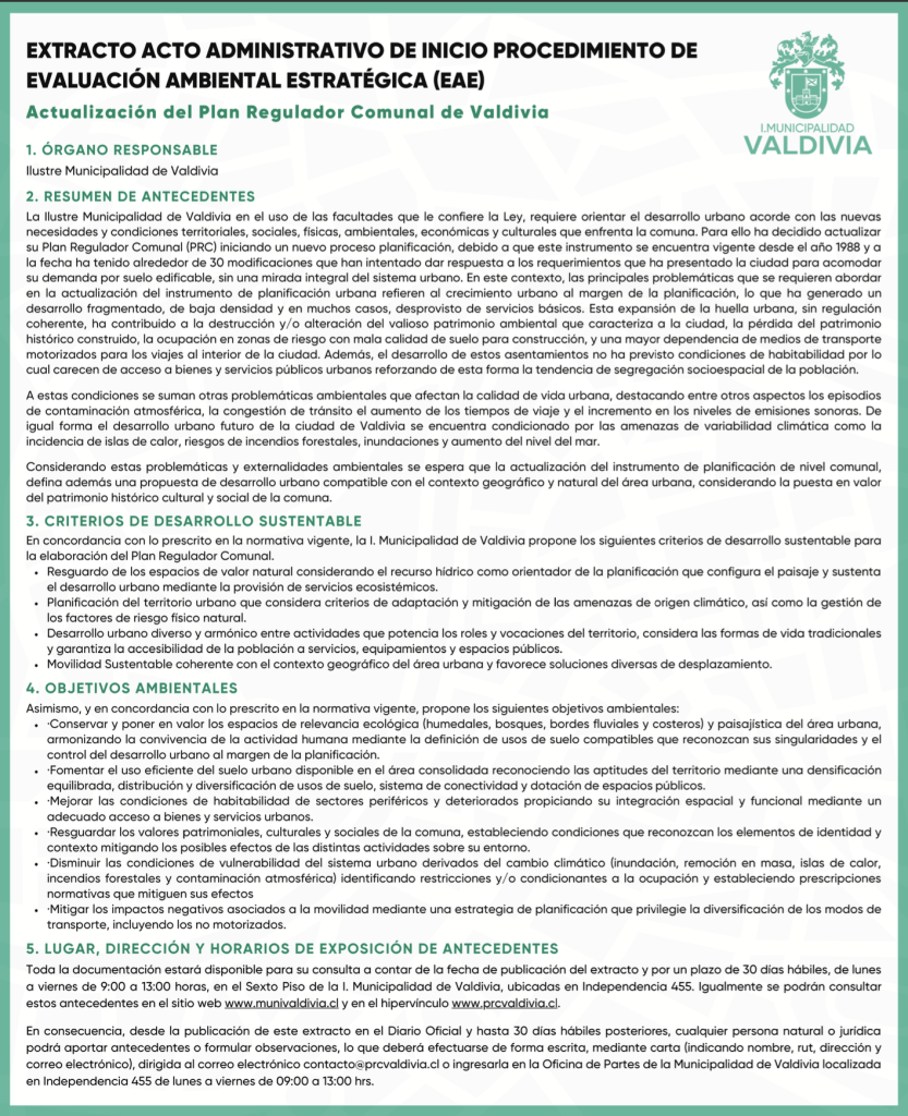 Su desarrollo considera la realización de diferentes estudios, participación ciudadana, una consulta indígena, con más de una veintena de profesionales trabajando en su concreción. La Ilustre Municipalidad de Valdivia dio el puntapié inicial al proceso de actualización del Plan Regulador Comunal de Valdivia, que proyecta como primer gran paso consensuar la Imagen Objetivo del desarrollo […]