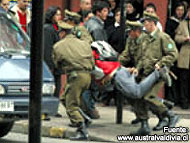 “Hay responsabilidad directa de quienes convocaron al acto que terminó en vandalismo en el centro de la ciudad, y que arrojó un saldo hasta anoche de 31 detenidos y daños millonarios a la propiedad privada y pública”, advirtió. “Este acto no fue de protesta, sino derechamente un acto de vandalismo; nadie puede impedir que la comunidad organizada exprese su opinión frente a lo que ocurre, pero lo que no puede pasar es que a quienes organizan este tipo de actividades se les escape de las manos”. La autoridad comunal añadió que ante la posibilidad de una segunda manifestación de similares características este lunes, esperaba que la Gobernación Provincial tome las medidas que hoy permite la ley de seguridad interior del Estado para la seguridad de la población que ayer se vio agredida. “Aquí la autoridad de Gobierno debe aplicar las sanciones y las normas a las que faculta la ley de seguridad interior del Estado, Pero la autoridad policial sobre todo, deberá adoptar todas las medidas para resguardar la seguridad de la población. No puede ser que la tranquilidad que hemos ganado en Valdivia se vea tan brutalmente violentada nuevamente”, observó. ASESORÍA JURÍDICA Berger informó que el municipio prestará asesoría jurídica a los afectados a través de la oficina Antidelincuencia. “Mucha gente nos ha estado preguntando quién paga los daños que sufrieron y, como decimos los chilenos, hasta ahora paga Moya. Para que eso no pase, invitamos a quienes resultaron perjudicados para que se acerquen a la oficina antidelincuencia donde estamos evaluando en lo global y caso a caso las denuncias”. En base a dichas denuncias y una vez que haya total claridad sobre el costo de las destrucciones, el municipio hará la presentación de las querellas pertinentes por los daños causados a la propiedad, vehículos y personas. “Aquí hay que buscar responsabilidades, esta cosa no puede ser tierra de nadie. Aquí tiene que haber un control, y si vamos a protestar, tiene que ser como corresponde protestar y no un vulgar acto de vandalismo y delincuencia”. Berger explicó que si bien el grueso de los participantes de los desmanes serían inimputables penalmente, existen responsabilidades en el ámbito civil que se pueden perseguir mediante las reparaciones económicas. Además, existen grabaciones de televisión a través de las cámaras de tele-vigilancia del centro de la ciudad que permitirán individualizar las autorías materiales. “Yo quiero hacer un llamado a quienes fueron los responsables de convocar a este acto, a pensar primero antes de lanzar la piedra, y a no convocar actos que no son capaces de controlar. Aquí los más perjudicados fueron personas que no tenían nada que ver con las demandas estudiantiles”, sostuvo. Hasta esta mañana, los daños al patrimonio municipal bordeaban los 2 millones de pesos, en tanto que el global de los desmanes superarían los 5 millones de pesos. |