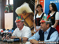 miércoles, 19 de enero de 2005———–. Más de 10 mil litros de cerveza están preparados en Valdivia para dar inicio a la tercera versión de la Bierfest “Fiesta de la Cerveza”, que desde el 27 al 30 de enero prometen aplacar la sed de todos quienes asistan al Centro de Ferias Parque Saval. Esta mañana el alcalde (s) de Valdivia Ramón González, junto al empresario valdiviano Armin Kunstmann, realizaron el lanzamiento oficial de uno de los eventos más llamativos del Verano en Valdivia. En la ocasión, González destacó la fortaleza del municipio local en buscar y concretar alianzas con el sector público y privado, lo cual ha quedado demostrado con la alianza iniciada desde hace 3 años con industrias Kunstmann, “que se tradujo en la realización de la Fiesta de la Cerveza que cada año se ha ido incorporando con mayor fuerza en la comunidad y en la tradición de Valdivia”.