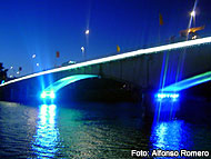 viernes, 04 de febrero de 2005————–. La iluminación del Puente Pedro de Valdivia será el regalo de cumpleaños que tendrá la ciudad del Calle-Calle este 9 de febrero, fecha en que se conmemorará el aniversario número 453 de dicha ciudad. Así lo anunció esta mañana el alcalde de Valdivia Bernardo Berger, quien precisó que el próximo miércoles 9 se realizarán una serie de actos, entre ellos la inauguración del proyecto de iluminación del Puente Pedro de Valdivia. Las actividades partirán temprano ese día en la alcaldía del municipio, oportunidad en que la autoridad comunal recibirá los saludos protocolares de los organismos con asiento en la comuna. A las 10:30 horas se realizará el tradicional TE DEUM en la Catedral, presidido por el obispo de la diócesis Ignacio Duchase. Posteriormente, a las 12 horas, se efectuará el acto cívico militar en la Plaza Pedro de Valdivia, donde junto con la formación de las unidades militares con presencia en la ciudad, se depositarán ofrendas florales en el busto del fundador. Luego a las 21:30 horas se realizará la ceremonia de inauguración del proyecto de iluminación, que vía el concurso “Philips ilumina tus ideas 2003” , permitió el diseño de una nueva iluminación para el Puente Pedro de Valdivia. El acto se hará en la avenida costanera, sector helipuerto, con la participación del Grupo Bordemar. En caso de lluvia, se trasladará todo al Museo de Arte Contemporáneo. El proyecto, en su aplicación, tuvo un costo aproximado de 90 millones de pesos, parte de los cuales son aportados por la transnacional a través de la donación de insumos y elementos eléctricos, como parte del compromiso adquirido con el municipio luego de la realización del concurso “Ilumina tus ideas 2003” en esta ciudad. El proyecto fue elaborado por los arquitectos de la Universidad de Chile María Loreto Flores, Andrés Schultz, Cristián Beros y José Miguel Iturra. Los trabajos fueron ejecutados vía propuesta pública por dos empresas: los aspectos eléctricos estuvieron a cargo de la empresa Ribertt & Ribertt por 26 millones pesos; y las estructuras metálicas, por Eugenio Zaralegui, por 44 millones y medio de pesos. En ambos casos, los fondos fueron asumidos con recursos netamente municipales. |