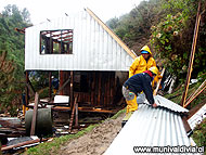 jueves, 23 de junio de 2005———–. Cuadrillas municipales trabajan esta semana en la localidad de Los Molinos para reconstruir la vivienda de la familia Hernández Ponce que el 6 de junio pasado resultó destruida luego que un aluvión cayera sobre ella. La casa se ubicaba al pie de una ladera al interior de Los Molinos, y producto de las fuertes lluvias y vientos de principios de mes resultó con serios daños, y dejó damnificada a la familia compuesta de dos adultos y tres menores. Esta semana personal municipal se abocó a ayudar a las víctimas de la emergencia y se trabaja intensamente para levantar de nuevo la destruida casa. Para esta labor, el municipio a través de recursos de emergencia destinó cerca de 800 mil pesos para invertirlos en materiales. Entre tanto, la familia de Mariano Hernández y Tatiana Ponce, y sus hijos de 7, 9 y 11 años, permanecen albergados, los primeros en la sede social de la localidad, y los segundos en el internado de la escuela de Niebla. Al respecto, el acalde Bernardo Berger indicó que el caso fue, junto con el derrumbe sobre el camino de Los Molinos, lo más grave derivado del frente de mal tiempo que azotó la zona, “más aún cuando se trata de un matrimonio de escasos recursos, que subsisten de la artesanía y las ventas en el pueblito comercial”. Añadió que la cuadrilla municipal a cargo de la reconstrucción de la vivienda, debió desarmar lo que quedó de ella, clasificar el material, recuperar lo utilizable y volver a levantarla. Se espera que las obras terminen de aquí al martes de la otra semana a más tardar. Subir |
