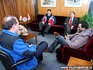 martes, 06 de septiembre de 2005.------ La nueva directiva de la asociación de profesionales y directivos de la Municipalidad de Valdivia, sostuvieron su primer encuentro oficial con el alcalde Bernardo Berger, en la alcaldía de esta comuna. La nueva mesa directiva está integrada por Rodrigo Navarrete, presidente; Enrique Sánchez, secretario; y Luis Moreira, tesorero. Los representantes del segmento profesional fueron elegidos en los comicios internos de la agrupación gremial realizados el pasado 30 de agosto. Los nuevos representantes del estamento profesional y directivo -integrado por 36 personas- asumirán de manera oficial la dirigencia este viernes 9 de septiembre en una ceremonia cuya hora y lugar está por confirmarse. Subir |