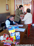 jueves, 15 de septiembre de 2005———–. Cuarenta canastas con alimentos para habitantes de la costa valdiviana entregó ayer el municipio en conjunto con la empresa Líder, a igual número de familias. La entrega se realizó ayer por la tarde en la localidad de Niebla, y el objetivo, según precisó el alcalde Bernardo Berger, es “ayudar a estas 40 familiar a sortear de una mejor forma las fiestas patrias”. La autoridad añadió que la entrega se focalizó en grupos familiares que atraviesan dificultades económicas y que, en su mayoría, habían resultado damnificados en distintos niveles durante las emergencias del mes pasado. La donación fue efectuada al municipio por la empresa Líder, y la entrega a los beneficiados ayer fue supervisada por el gerente de ventas de la empresa, Francisco Simonelli. |