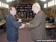 jueves, 06 de abril de 2006———–. Con emotivas palabras de cariño y recuerdos, y en las manos la medalla fundacional de la ciudad de Valdivia, este mañana el ex senador Gabriel Valdés fue homenajeado por la Municipalidad del Calle-Calle. El ex parlamentario –apodado El Conde por su estilo de promover la denominada “alta política” de partidos- por dos períodos ocupó el escaño senatorial, que incluso presidió en el período del presidente Patricio Aylwin. Un apoyo irrestricto a los intereses locales, como lo resaltó en su saludo el alcalde Bernardo Berger antes de entregar la medalla, le merecieron el reconocimiento de todos los sectores políticos locales. La autoridad comunal destacó la figura de Valdés estrechamente ligada al desarrollo cultural e intelectual de la ciudad. Resaltó particularmente la autoría de la ley de donaciones culturales que lleva su nombre, y el impulso que dio a la instalación en la ciudad del Centro de Estudios científicos del Sur que preside Claudio Munster. “Usted sólo termina su representación en el Congreso como senador de esta zona, pero estoy seguro que continuará su vida pública por mucho tiempo y esperamos lo siga haciendo como un valdiviano más, brindándonos su apoyo y ayudando a avanzar en tantas iniciativas pendientes”, le dijo Berger a Valdés durante la ceremonia. El timonel comunal agregó que hoy mencionar al ex senador Valdés es mencionar a Valdivia, su belleza y potencialidad, y que la medalla de los 450 años que recibió esta mañana representa “toda una historia de nuestra ciudad, donde estoy seguro la personalidad de don Gabriel se mencionará con letras destacadas”.