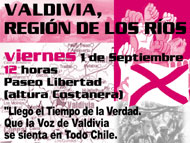 jueves, 31 de agosto de 2006———–. La Asociación de Funcionarios Municipales de Valdivia, se sumó a la convocatoria de paralización de actividades para mañana viernes, con motivo de la creación de la nueva región de Valdivia. La directiva hizo un llamado a los otros gremios de servicios públicos de la provincia a sumarse a la iniciativa, para así llamar la atención del gobierno respecto a mantener el proyecto de región tal como se aprobó en la Cámara de Diputados. Mientras se desarrolle la actividad, citada a las 12 horas en el Paseo Libertad a la altura de la Costanera, se mantendrá un mínimo de funcionarios cumpliendo sus labores habituales en los distintos departamentos municipales. |