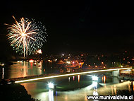 Tras ello, dos cascadas de fuegos artificiales, lanzadas desde Asenav la primera y desde una acondicionada plataforma de lanzamiento la segunda cerca del puente Pedro de Valdivia, dan la bienvenida a la serie de fuegos artificiales que iluminan por cerca de 25 minutos el cielo y las aguas de Valdivia.