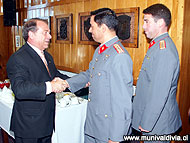 Una cortina de agua y la banda de conciertos del Ejército abrieron la jornada con en saludo matinal a la primera autoridad de la comuna. Desde el balcón de la alcaldía, en el tercer piso por calle Chacabuco, Bernardo Berger fue recibiendo uno a uno a los representantes de las fuerzas uniformadas.