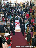 miércoles, 15 de noviembre de 2006———–. El alcalde de Valdivia Bernardo Berger agradeció a la comunidad valdiviana por la despedida de ex concejal, ex alcalde, regidor, diputado e Hijo Ilustre de la ciudad, Jorge Sabat Gozalo. Notoriamente emocionado, el edil del Calle-Calle se refirió a la figura del “doctor del Pueblo”, de cuyas manos le correspondió recibir la alcaldía en su período del año 2000. Luego, el 2003, fue el propio Berger el encargado de entregarle la distinción de hijo ilustre, cuando Sabat era concejal. “Quiero invitar a reflexionar sobre la enorme potencia de su figura, que supo desprenderse de las limitaciones partidarias para ponerse al servicio de la comunidad en aquellas causas que consideraba justas, en su rol tanto de hombre político como en su desempeño profesional como médico”, sostuvo. Añadió que hoy el municipio asistió a los actos fúnebres. Primero a la misa programada a las 16 horas en el templo Catedral (nave principal) y luego, a las 17 horas, al funeral en el Cementerio General de Valdivia. Además, hoy se mantiene el luto oficial acordado por el concejo Municipal de Valdivia, con banderas a media asta y suspensión de los actos festivos que tenía programado el municipio en sus diversas actividades cotidianas. “En lo personal su fallecimiento me toca hondo, pues cuando fui concejal tuvimos una excelente relación, aprendí a conocerlo y valorarlo, y lo mismo sucedió cuando me tocó recibir de sus manos el cargo de alcalde”, recordó Berger. |