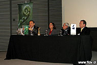lunes, 06 de agosto de 2007————. Con importantes anuncios fue lanzado oficialmente, este viernes 3 de agosto, el 14º Festival Internacional de Cine de Valdivia, en la Cineteca Nacional del Centro Cultural Palacio de La Moneda, en Santiago. Al evento asistieron el senador Andrés Allamand; el diputado Alfonso De Urresti; el Seremi de Cultura de la Décima Región de Los Lagos, Carlos Matamala; el director de CORFO Provincia de Valdivia, Roberto Martinic; la secretaria ejecutiva del Consejo del Arte y la Industria Audiovisual , Carola Leiva; representantes de la Embajada de Brasil y Australia, empresarios del área cinematográfica y audiovisual, entre otros. El director del 14º FICV, Guido Mutis, anunció los nombres de los invitados al evento de este año, como son el director alemán de cine, Fred Kelemen y el destacado crítico y escritor, Jonathan Rosenbaum; además adelantó la presencia de la actriz chilena, radicada en Alemania; Carolina Vera, quien participó en el film “El Perfume”. También dio a conocer que las retrospectivas de este año serán dedicadas a los autores Claudio Di Girolamo, Claudio Sapiaín y Guillermo Cifuentes. Además destacó el éxito de participación logrado este año. “Quiero relevar el éxito en la convocatoria a participar en la competencia. Los números han sido auspiciosos, recibimos 20 películas de largometraje, cifra nunca antes registrada; 47 documentales y 73 cortometrajes; además, en la categoría Gente Joven nos llegaron 54 obras y en video regional 20, en total 214 trabajos, lo cual es un éxito para nuestro festival”, dijo. El alcalde de Valdivia, Bernado Berger, valoró el desarrollo del Festival Internacional por el aporte que significa para la economía local de la nueva capital de la Región de Los Ríos, especialmente en el área turística que permite proyectar la ciudad a Chile y al mundo. “Este es un Festival que está con pantalones largos y lo seguiremos profesionalizando, porque queremos que siga subiendo de categoría a nivel internacional”, destacó Berger instó al sector privado a seguir apoyando la producción del Festival, para la gestión que “se esta haciendo con bastante seriedad”. En tanto, la presidenta subrogante del Centro Cultural de Promoción Cinematográfica de Valdivia, Odette Hidalgo, puso énfasis en el desarrollo social que permite potenciar el evento. “Esperamos que sea la comunidad la que se empodere del Festival de Cine, para que Valdivia sea la ciudad del cine y que la comunidad sienta que es un evento propio y que el cine pueda llegar a los barrios y a las comunas de la nueva Región de los Ríos”, expresó. El prorrector de la UACh , Juan Omar Cofré, recalcó el apoyo dado por la casa de estudios superiores y el compromiso por fortalecer el Festival. “Estamos comprometidos con la cultura, es una universidad de vocación nacional, de servicio a la nación, de compromiso social y en eso estamos comprometidos con interesar, difundir y fomentar las artes y este festival es testimonio de ello”, dijo.