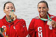 Soraya Jadué Arriaza pertenece al Club Phoenix, y María José Orellana Gómez, al club Arturo Prat. Ambas corrieron en el bote dos sin timonel libre y obtuvieron oro.