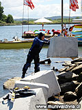 martes, 09 de enero de 2007————. La Municipalidad inició este mediodía los trabajos de instalación del mecanismo de anclaje que permitirá el funcionamiento de las dos balsas para lobos marinos en el río Valdivia. Las plataformas flotantes, de unos seis por tres metros cada una, fueron construidas en madera y metal en noviembre por la empresa Socovesa. Sin embargo, la complejidad de su instalación en el agua, las altas exigencias técnicas para un emplazamiento de este tipo, y el monto de la inversión requerido para ello, obligaron al municipio a presentar una serie de estudios y, finalmente, a contratar obras anexas. “Este ha sido un camino más lento del que pensamos en un principio, principalmente porque las balsas deben quedar fijas en el agua y soportar no sólo las condiciones propias de esta ubicación, sino también las mareas, corrientes y el peso de los lobos”, explicó el alcalde subrogante Ramón González. Este mediodía una empresa especializada en la materia –Báez, Cisternas y Compañía Limitada- inició las faenas para instalar el sistema de anclaje. La primera tarea consiste en la colocación de los ocho “muertos”, estructuras de hormigón de más de una tonelada cada una traídas de Puerto Montt, las que, una vez fijadas al fondo del río, soportarán el sistema de cables metálicos, boyas y niveladores. “Esta tarea puede fácilmente demorar toda la semana, Calculamos que a mediados o fines de la próxima estaremos en condiciones de entrar a la última etapa, estos es, la conexión física de las balsas al sistema de anclaje”. Este mediodía una grúa levantó los ocho muertos y los depositó en el río a la altura del botadero de lanchas. Desde ahí y a través de un sistema de flotamiento por globos, serán desplazados en los días siguientes por buzos hasta los puntos exactos donde se ubicarán las balsas, estos es, frente a la Feria Fluvial a unos dos metros del borde de río, y a la altura del Parque Prochelle, a unos tres metros de la orilla. “En total, estamos invirtiendo en esta solución cerca de 5 millones de pesos del presupuesto municipal, a lo que se agregan otros aportes como el de Socovesa o el de la empresa Aquasan que aportó estudios de ingeniería de forma gratuita”, añadió González. |