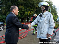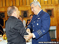 Desde tempranas horas de hoy las autoridades se acercaron a saludar al Alcalde de Valdivia, Bernardo Berger, con motivo del aniversario número 455 de la ciudad. A las 8:30 de la mañana el edil recibió el homenaje oficial de Bomberos, y luego, alrededor de las 9:45 horas se dio inicio a los saludos protocolares. El primero en felicitar al Alcalde Berger fue Ricardo Toro, Comandante en Jefe de la III división de Ejército, junto a un grupo de representantes de su institución. Más tarde fue el turno del Comandante Pedro Gutiérrez, delegado de la Fuerza Aérea, y de Otto Murgalski, Capitán de Fragata Litoral y Gobernador Marítimo de Valdivia. Estuvieron presentes también en la ceremonia de saludos oficiales la Teniente Coronel Marcia Arriman, Jefa de la Prefectura de Carabineros Valdivia, y Sergio Andrade, jefe de Prefectura de Investigaciones de Valdivia. Además se contó con la presencia del Comité Nueva Región, y del Comité Femenino de la Nueva Región, además de la presencia de los concejales Israel Huito, Enrique Salinas, Francisco Eguiluz y Marcos Cortés, y funcionarios municipales. “Para mí es un orgullo ser alcalde de Valdivia, y quisiera felicitar a todos los Valdivianos y valdivianas que han luchado para que hoy ya podamos formar la nueva Región de los Ríos. En especial me gustaría destacar la labor de aquellos que ya no están con nosotros”, destacó Berger en la jornada matinal. A las 10:30 se dio paso a un Te Deum religioso en la Catedral de Valdivia, oficiado por el Obispo de la Diócesis, Monseñor Ignacio Duchase. En la celebración, el Obispo señaló que “en estos momentos, cuando Valdivia tiene la tarea de ser capital de la nueva región, es fundamental que los líderes y autoridades públicas y privadas trabajen con responsabilidad para la dignificación de los habitantes de la ciudad, y el cuidado de la familia y los valores”. Posteriormente y antes que se iniciara el desfile en la Plaza de la República, el edil depositó una ofrenda floral en el busto de Pedro de Valdivia.
