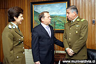 lunes, 24 de septiembre de 2007—————. Una reunión a primera hora de hoy sostuvieron el director general de carabineros, José Bernales, y el alcalde de Valdivia Bernardo Berger, para discutir los alcances que tendrá en la comuna la aplicación del plan cuadrante. La primera autoridad uniformada fue recibida por Berger esta mañana en el municipio. En la ocasión, el edil agradeció a Bernales por esta “noticia largamente esperada” en el municipio y recordó las gestiones hechas bajo su administración hasta conseguir la incorporación de Valdivia al plan de la policía. Además, Berger relató los esfuerzos de la corporación para colaborar tanto en el combate al crimen como en su prevención, entre ellas, enumeró la creación de las oficinas de seguridad pública y antidelincuencia, y la administración de programas municipales como Previene y la Oficina de la Familia. Además, el jefe comunal puntualizó que la corporación mantienen planes en coordinación con las policías, y que a la fecha existen en la comuna 12 cámaras de tele-vigilancia operadas por Carabineros, se han creado 700 comités vecinales de seguridad y se espera duplicar la cifra al 2008. “Pero más allá de estas iniciativas, nada puede reemplazar la acción que por ley le compete a la policía uniformada, por eso nos alegra tanto esta noticia largamente esperada, que significará más carabineros en las calles y en los barios, más equipamiento y más recursos para combatir el crimen”, dijo Berger. |