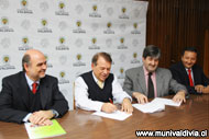 Lunes, 07 de Abril de 2008———–. El gerente general de la mutual de Seguridad Jorge Schwerter, junto con la plana mayor de la institución, realizaron una visita protocolar al alcalde de Valdivia, Bernardo Berger, este mediodía. La visita se enmarca dentro de un trabajo en conjunto que ambas instituciones se encuentran realizando para potenciar la prevención en los establecimientos y dependencias municipales. En la ocasión ambas autoridades firmaron un comodato que traspasa al municipio de una camioneta Nissan 2004 4x2, destinada al departamento de Prevención de Riesgo de la casa edilicia, con el objetivo de potenciar la prevención y optimizar los tiempos de desplazamiento. El vehículo será entregado materialmente este miércoles en la mañana al municipio. Junto con el máximo representante de la Mutual de Seguridad se hicieron presentes en la oportunidad, el Gerente Comercial, Raúl Arrázola y el Gerente Zona Sur, Edmundo Zambrano y el Agente de Sucursal, Marcos Cruzat. Actualmente la Unidad municipal de Prevención de Riesgo se encuentra en la Avenida René Schneider 188-B, a cargo de la profesional Leyla Molina, cuya responsabilidad es administrar el seguro y otorgar las prestaciones requeridas por el personal, según lo estable la Ley 16.744. La corporación edilicia trabaja en conjunto con la Mutual de Seguridad desde febrero de 1993. |