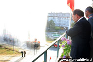 sábado, 09 de febrero de 2008———. (9:50 horas) Con una cortina de agua y la banda de conciertos de la tercera división del Ejército interpretando el “cumpleaños Feliz” se abrieron las celebraciones oficiales de los 456 años de la ciudad de Valdivia hoy a las 9 horas. Desde el balcón de la alcaldía del municipio, en el tercer piso por calle Chacabuco, el alcalde Bernardo Berger fue recibiendo uno a uno a los representantes de las fuerzas uniformadas, representantes políticos, bomberos y empresariales de la región.