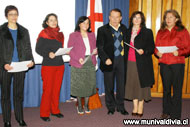 martes, 09 de septiembre de 2008————. Sus diplomas que las certifican como capacitadas en expresión oral, recibieron esta mañana 30 mujeres pertenecientes al programa de jefas de hogar de la Oficina Municipal de la Familia. La ceremonia de entrega de diplomas se efectuó esta mañana a las 10:30 horas en la Sala Provincia del municipio, y fue encabezada por la primera autoridad comunal, el alcalde Bernardo Berger. El curso, bajo la forma de taller, se desarrolló entre agosto y septiembre, con tres sesiones diarias por semana, y forma parte de la red de capacitación que ejecuta la corporación edilicia para mejorar las oportunidades de emprendimiento laboral para las jefas de hogar de la comuna. En la ocasión, Berger saludó a las “diplomadas” y elogió el esfuerzo y la perseverancia del grupo para mejorar sus destrezas y querer superarse, y adelantó que el municipio seguirá realizando actividades de este tipo. “Nos preocupa seguir dando oportunidades de desarrollo personal y laboral a las mujeres, por eso ya estamos con otro taller orientado a la contabilidad para jefas de hogar en el ámbito independiente, administrativos con nociones de venta, y gestión en administración de empresas, entre otros”, agregó. |