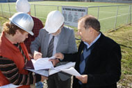 miércoles, 08 de abril de 2009———–. La entrega de los terrenos para comenzar las obras de la segunda etapa de construcción del complejo Deportivo Felix Gallardo, se efectuó esta mañana en el lugar. De esta forma, puntualizó al respecto el alcalde Bernardo Berger, “el municipio da un nuevo paso para cumplir con el compromiso asumido hace un año y medio de crear el primer complejo deportivo con pista sintética dedicado al fútbol de los barrios”. En la actividad de la mañana se firmaron las actas entre la corporación y la empresa Ribertt & Ribbertt -contratista que ganó la licitación publica– y se dio inicio a las faenas. “Se trata de una iniciativa de un alto valor simbólico parta este municipio, porque refleja el compromiso concreto de este alcalde y la corporación con el deporte de barrio y amateur, con la construcción de un estadio de primer nivel, con pista sintética, en un barrio de la ciudad con tanta historia y tantas tradición deportiva”, acotó. La inversión en esta etapa es de 969 millones 989 mil 406 pesos en construcción, a lo que se agregan otros 60 millones de pesos para la adquisición de equipamientos. Los recursos fueron obtenidos luego de ser presentado el proyecto por el municipio al Fondo Nacional de Desarrollo Regional el año pasado, se obtuvo la resolución técnica y fue financiado con cargo también al año pasado, pero estaban pendientes los aspectos administrativos que nos permitieran iniciar los llamados a propuesta. La etapa consiste en graderías para 3.500 personas, salas de locución y transmisión radio y TV, boleterías, camarines adicionales a los ya existentes, iluminación de la cancha, adaptada para transmisiones televisadas deportivas, y mejoramiento del gimnasio ex Cendyr Gil de Castro que fue traspasado en comodato hace poco al municipio. También incluye cierres perimetrales, y estacionamientos para 300 vehículos por Avenida Mackenna, en un actual sitio eriazo. Tanto el estadio como el gimnasio quedarán equipados con tableros electrónicos (marcadores) en caso de la cancha, especial para fútbol, en tanto que el del gimnasio, es un tablero polifuncional, para distintos deportes y actividades “En total estamos mejorando y recuperando para la ciudad, la recreación y el deporte cerca de 6 mil metros cuadrados, dentro de los cuales 2.500 consistirán en edificaciones”, agregó Berger. El plazo de ejecución de los trabajos por parte de la empresa es de 210 días corridos que empiezan a contar hoy y finalizan en noviembre. Durante ese período, la constructora generará además, ocupación y empleo para un promedio de 45 personas por mes. |