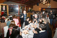 martes, 25 de agosto de 2009———-. Más de 350 personas asistieron este fin de semana a la cena anual con que la Municipalidad de Valdivia homenajeó a los dirigentes vecinales de la comuna, que durante agosto conmemoran la creación de la figura legal que los representa. La cena fue organizada por el municipio a través de su departamento de Organizaciones Comunitarias, y a ella fueron invitadas todas las directivas de las juntas de vecinos, tanto urbanas como rurales, que hoy están activas en Valdivia. El Fogón Llancahue fue este año el lugar elegido. El anfitrión, Bernardo Berger, destacó en la ocasión la excelente comunicación y el trabajo colaborativo que existe entre el municipio y las organizaciones de base, que ha permitido construir de manera participativa y transparente los proyectos de inversión y los beneficios sociales actualmente en operación. “En lo personal siento una gran admiración por quienes detentan el rol de dirigente vecinal. Significa restar tiempo al trabajo al descanso o a la familia, para hacer algo gratuito por el bien de los demás. Es un valor que cada vez es más raro en una sociedad que parece destacar lo malo por sobre lo bueno”, sostuvo el edil. Berger añadió que la cena y el resto de la celebración fue un pequeño gesto en que el municipio no escatimó esfuerzos, “pues si uno pone en la balanza el trabajo de las juntas vecinales, en buena medida son nuestros ojos y manos en los sectores donde a veces no podemos llegar; son la mirada que nos ayuda a resolver los problemas de nuestras familias”. Por su parte, la presidenta de la Unión Comunal de Juntas de Vecinos, María Eugenia Soto, agradeció el gesto y la preocupación permanente del municipio, así como el espíritu de equipo que une a ambas instituciones. En la velada, tanto el alcalde como los concejales que lo acompañaron, compartieron con los asistentes una cena que fue amenizada por la Tuna Santa María. También cada una de las 350 personas recibió un presente de manos del edil y luego compartieron una fiesta bailable en los salones contiguos al restaurant. |