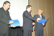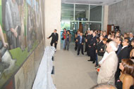 Al finalizar la ceremonia de certificación los invitados tuvieron la oportunidad de recorrer las inmediaciones del Casino y de disfrutar junto al artista Claudio Di Girolamo y su hijo,Roberto del destape oficial de la reconstrucción del mural pintando hace más de 50 años por el artista, el cual narra la historia de la fundación de Valdivia. |