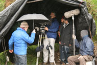 Miércoles, 08 de julio de 2009.----- Ni el viento, ni la intensa lluvia que cayó en nuestra ciudad el pasado fin de semana impidieron que la producción del 16° Festival Internacional de Cine de Valdivia rodara el sábado recién pasado el spot oficial de su versión 2009. Dirigido por el destacado cineasta valdiviano Cristian Jiménez (“Ilusiones ópticas”) la jornada contó con la participación de actores locales quienes se encargaron de dar vida a los protagonistas de la historia, los que de forma cómica, reflejan la historia de Valdivia desde los tiempos de antaño hasta su desarrollo actual. “En 30 segundos contamos la evolución de la ciudad en la voz de una mujer mayor quien narra la historia del Valdivia de hace 50 años, en contraste con una serie de situaciones excéntricas que reflejan y dan vida a la ciudad más contemporánea”, agregó Jiménez. Debido a las condiciones climáticas que acompañaron el rodaje, el guión original sufrió algunas variaciones las que favorecieron finalmente al resultado esperado. “Nuestra idea era que Valdivia se viera tal cual es en esta época del año: la ciudad más lluviosa de Chile”. Tribus urbanas, niños y situaciones extremas, en conjunto con un entorno natural privilegiado de nuestra ciudad, dan vida al trabajo audiovisual que promocionará la fiesta del cine en Valdivia, producción que se emitirá en las pantallas locales de ATV y a nivel nacional e internacional por la señal de TVN a partir del mes de septiembre. Visita la galería de fotos en www.ficv.cl. |