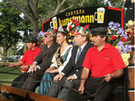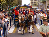 También el carro cervecero “Bierwagen” participó de los festejos en el centro. Rodeado de jóvenes y adultos, dificultosamente pudo dar vueltas a la plaza, pues se encontraba agobiado de sedientos bebedores que esperaban su turno de degustar la cerveza valdiviana, conocida a nivel mundial.