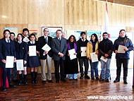 miércoles, 09 de junio de 2004————. En la Sala Ainilebu se efectuó este mediodía la entrega de los premios a los ganadores de los concursos plásticos del Mes del Mar, que organizó este año la Municipalidad de Valdivia en el marco de la Feria del Mar 2004. La ceremonia fue presidida por el alcalde Bernardo Berger, quien en su intervención destacó la vocación industrial que ha tenido Valdivia a través de su costa, y resaltó el aporte cultural que hace el litoral al enriquecimiento de la comuna. En la ocasión fueron premiados los participantes de los certámenes plásticos de pintura todo competidor, enseñanza básica y enseñanza media; fotografía papel y fotografía digital. En el concurso de Pintura el primer lugar fue para Rigoberto Vargas con un premio de cien mil pesos; segundo lugar para Segundo: Natalia Saravia (60 mil pesos) y tercero para Juana Lancapichún (40 mil pesos). Las menciones honrosas en esta modalidad fueron para María Inés Puigchinet, Karin Roth e Ingrid Plasensio. En la modalidad fotografía papel, la primera ubicación la obtuvo Felipe Jaramillo, quien se adjudicó un premio de 60 mil pesos, en tanto que el segundo lugar fue para Yoyi Koda con 30 mil pesos. En fotografía digital el primer lugar fue de Jorge Searle (60 mil pesos), el segundo de Anita toloza (30 mil pesos) y el tercero de Ricardo Arnés (20 mil pesos). Menciones honrosas hubo para Arturo Cofré y Marcos Norambuena. En el concurso de pintura y dibujo, categoría enseñanza básica, el primer lugar lo obtuvo Cristina Quintul Cárdenas de segundo básico de la Escuela Teniente Merino; el segundo, Elizabeth Alarcón de primero básico de la Escuela rural de Curiñanco, y el tercer, Augusto Rojas, de Kinder B de la Escuela El Laurel. Menciones honrosas hubo para Camila Figueroa de quinto básico de la Escuela de Cayumapu, y para Diego Olivares de segundo básico de la Escuela El Laurel. En pintura Enseñanza Media, el primer lugar fue para Bernardita Mora del colegio María Auxiliadora; el segundo para Bárbara Miralles del mismo plantel; y el tercero para Nicolás Salvo del colegio Alonso de Ercilla. La mención fue para Angélica Aros del Liceo Santa María la Blanca. |